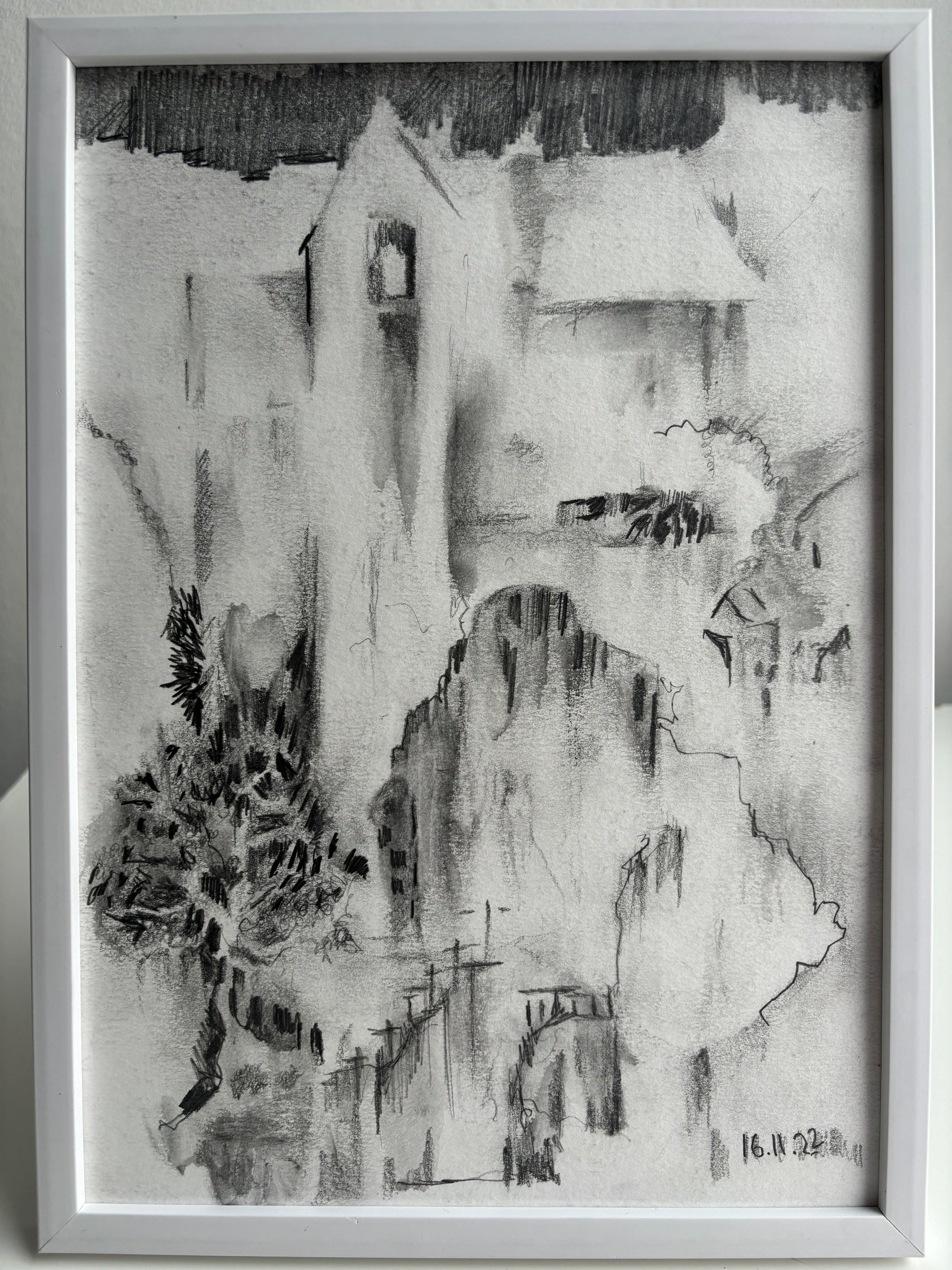 Expertly crafted with pencil on high quality mixed media paper, this A4 sized drawing showcases a unique perspective of the world of Darkotopaxi. Unframed, it stands as an original piece of art, capturing the beauty of this mysterious world. Enjoy the intricate details and precise lines of this UNTITLED piece.