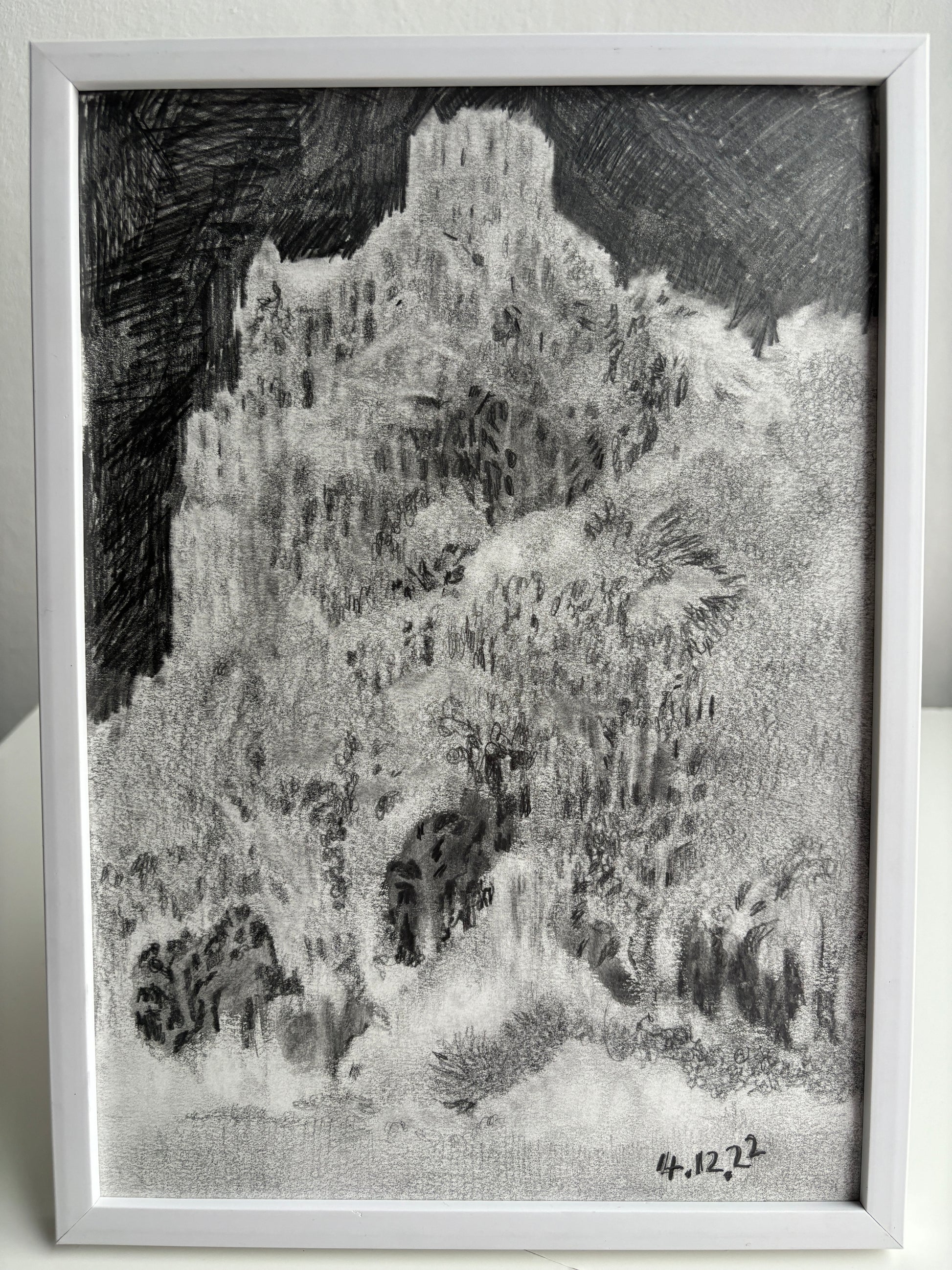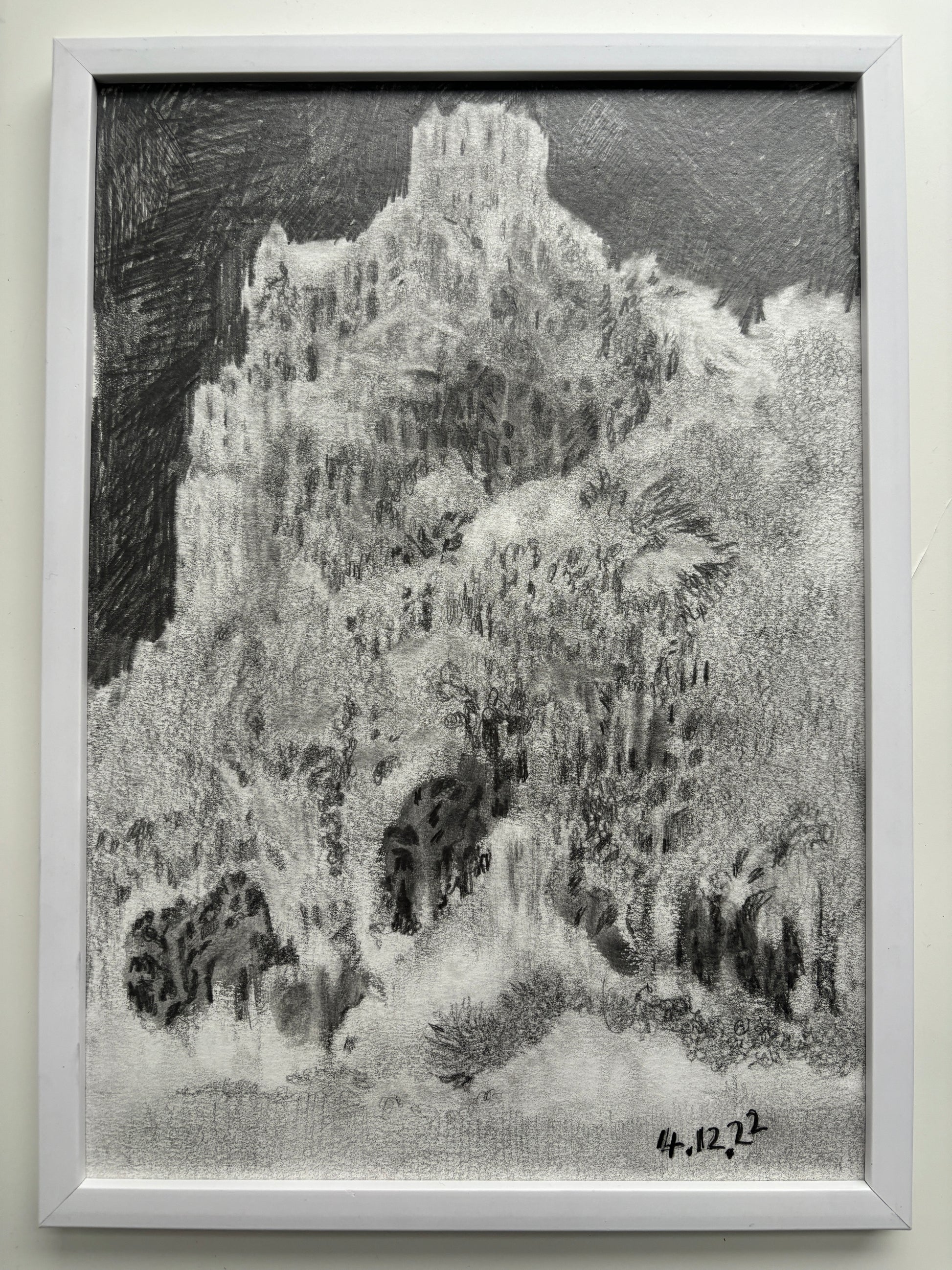Expertly crafted with pencil on high quality mixed media paper, this A4 sized drawing showcases a unique perspective of the world of Darkotopaxi. Unframed, it stands as an original piece of art, capturing the beauty of this mysterious world. Enjoy the intricate details and precise lines of HILLTOP (BACK VIEW).